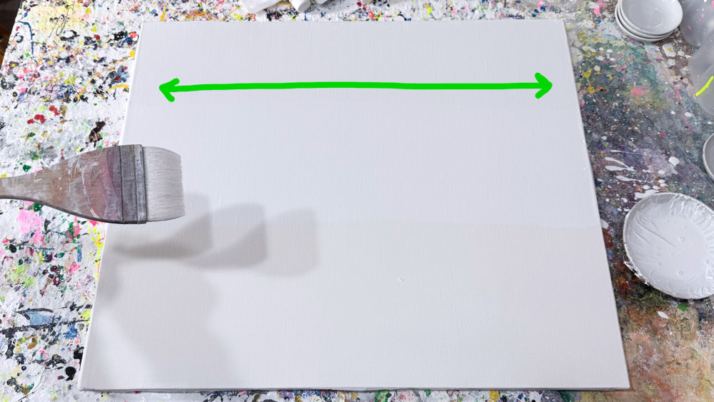 まず初めに、キャンバスの荒い目地をある程度埋めるために固めのメディウムを塗ります。
